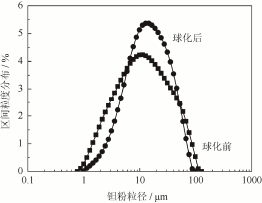 Fig.5Particlesizedistributionsoftantalumpowderbeforeandafterspheroidization