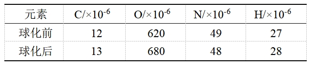 (3)经过球化后,钽粉中的间隙元素含量没有明显增加,粉末表面光洁,内部未发现有空心粉等缺陷。