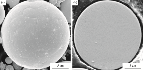 图7球化后粉末的表面(a)及截面(b)显微形貌图
