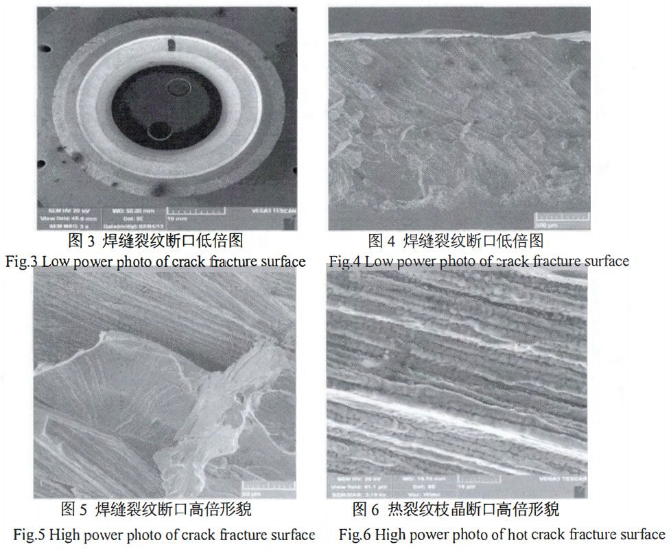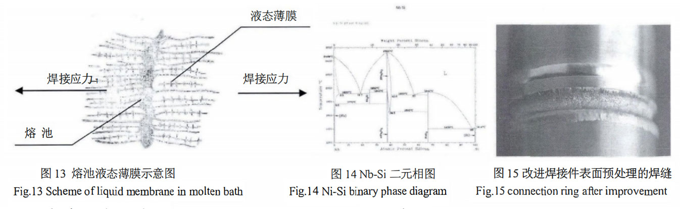 裂纹断口扫描电镜观察及XRD(X射线衍射)分析表明:此种裂纹是在焊缝结晶过程中形成的凝固裂缝,且主要为Nb?Si?化合物的低熔点共晶。