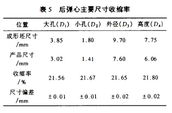 由上述对比结果和表5可见,注射成形产品烧结收缩基本上是各向同性的,这是由于成形坯中密度梯度小,烧结时各处均匀收缩。