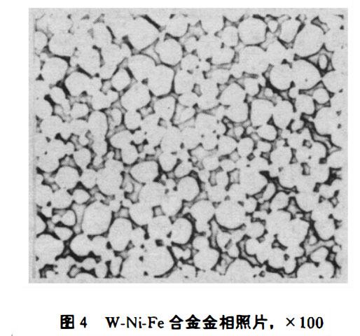 钨基重合金的微观组织由粒状钨颗粒和网状分布的粘结相组成。钨颗粒与钨颗粒之间直接接触处是断裂源最易产生的地方[8]。因此,通过使粘结相均匀分布在钨颗粒周围,减少它们之间的直接接触,是提高合金性能的有效途。径,特别是对钨含量较高(>93%)的重合金更是如此。与传统粉末冶金工艺相比,MIM T.艺增加了混炼工艺,由于有机粘结剂和表面活性剂的加入,使得钨粉更加分散,消除了团聚现象。此外,这种混炼过程可消除干混工艺所存在的粉末密度偏聚,这样使粘结相的分布更加均匀(如图4所示),此外,注射成形过程几乎不存在压力梯度,产品密度分布均匀(图1),因此MIM产品的强度得到显著提高。