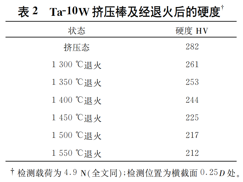 3.1 Ta-10W合金挤压棒的再结晶退火温度