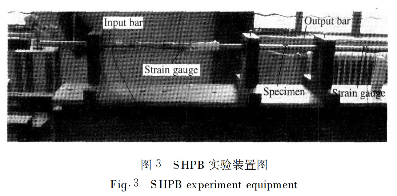 根据一维波传播理论,入射波与反射波信号之和等于透射波信号,因此可以选择任两波信号或采用三波信号进行处理,以获得试件的应力、应变和应变率曲线。从文献[12]可知,基于绝对时间下的试件应力及应变计算的三波处理法具有很好的可信度,且能最大程度地避免数据处理过程中的人为因素,传统二波法不是优选的方法,但对于只有两个波信号的数据(输出杆应变片坏或反射波信号异常情况)可采用二波法分析获得试件的动态力学性能。三波法是将实验采集的入射波、反射波和透射波信号进行综合分析,计算试件材料的应变率、应变和应力曲线,计算公式为(1)式~(3)式