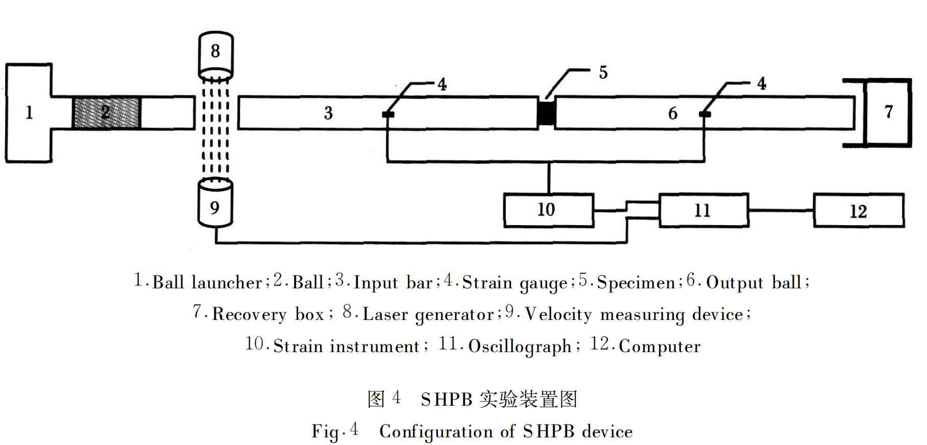 式中:C0 为压杆的弹性波速;l0 为试件的初始长度;E 为压杆的弹性模量;A 为压杆的横截面积;As 为试件的横截面积。两波法是在试件两端应力平衡公式(4)的基础上对三波法的简化,采用3个波中采集到的两个波信号进行分析,以此来获取试件材料的动态力学性能。在此以反射波和透射波信号为例计算材料的动态应力、应变,其具体的处理公式为(5)式~(7)式