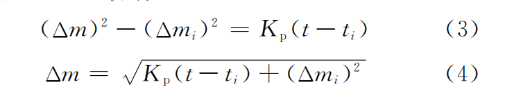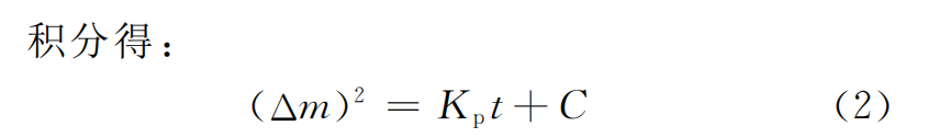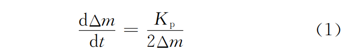 根 据 Wagner氧化 动 力 学 理 论,金 属 氧 化 速 率由正负离子通过已形成氧化膜的扩散控制。以 Δm代表单位时 间 单 位 面 积 增 重,t代表 时 间,Kp 代表氧化速率常数。假设t=0时,Δm=0,则有
