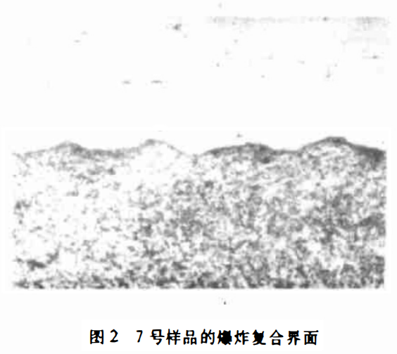平行安置的爆炸复合结构,炸药的爆速Va与碰撞点移动速度Vc相等,因此炸药的选择受到碰撞点移动速度V。的极限条件限制。Ta-10W与钢爆炸复合时,碰撞点移动速度Vc的下限为2345m/s,上限为3530m/s(1),这就要求所用炸药的爆速应在2345~3530 m/s之间。