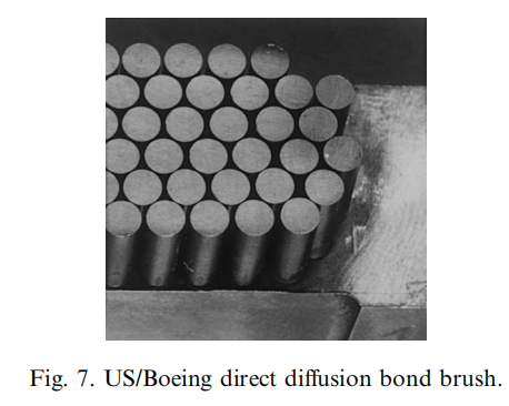 第三种方法是钨刷结构(正在申请专利),该结构由美国正在推广的,采用直径1.58-3.16毫米的小型钨焊条和软铜[1o]制成。钨通过焊接珩磨头固定到位。梳状磁芯采用低温(450-550°C)铜-铜扩散连接技术与铜合金热沉连接(见图7)。除了钨棒尺寸小巧和使用柔软纯铜外,较低的连接温度进一步降低了残余应力。等离子喷涂和直接扩散连接技术的模型已经制造完成,目前正在美国新墨西哥州阿尔伯克基市桑迪亚国家实验室的电子束试验台上进行高热流测试。