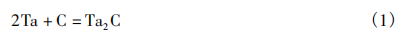 此时C只填充在部分八面体间隙中,随着渗碳时间的延长,过量的C占据Ta2C 晶格的八面体间隙的同时,晶体结构开始转变( hcp→fcc) ,开始形成立方( fcc) 结构的 TaC,同时未发生反应的 Ta和 C 继续生成Ta2C。式( 2) 为该阶段的主要化学反应: