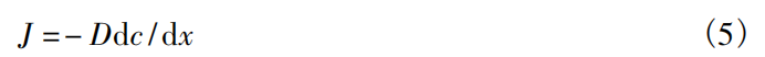 式中,W为渗碳层厚度,K是渗碳温度与活化能的函数,t为时间。即在相同渗碳温度下,渗碳层厚度随渗碳时间的延长而增加,渗碳层增长速率减缓。根据菲克第一定律可知扩散通量的大小与浓度梯度成正比: