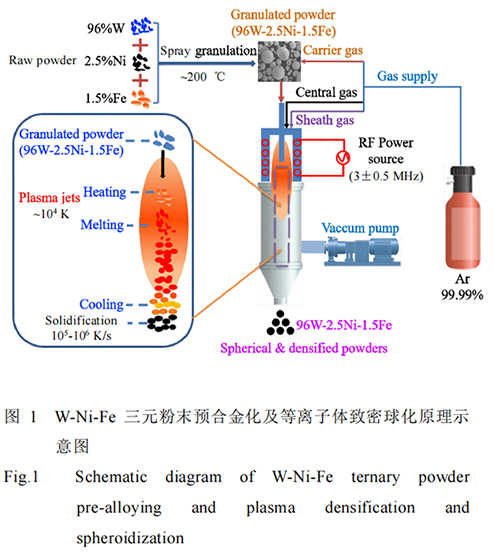 1.2 前驱体 W-Ni-Fe 三元粉末的预合金化及等离子体致密球形化