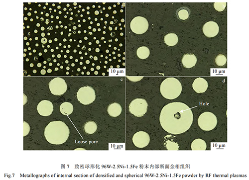 2.3 96W-2.5Ni-1.5Fe 三元合金粉末射频热等离子体致密化实验研究