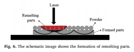 如图5(a-b)所示,W70合金的截面表面可见交替出现的层状细枝晶区和粗枝晶区。图 5(e)所示的元素含量表明,粗大的枝晶区由W颗粒和Ni-Fe-Co粘结相组成。当激光束照射混合粉末时,粉末吸收能量,温度迅速升高。大部分W颗粒完全熔化,熔池内形成温度梯度。在熔池上部,温度超过钨的熔点,导致W颗粒熔化。然而,在靠近固态成形部件的区域,部分W颗粒未熔化。Gurwell报道,由于SLM工艺过程中液相丰富,重力诱导的偏析也导致层底部W颗粒增多[[31]]。