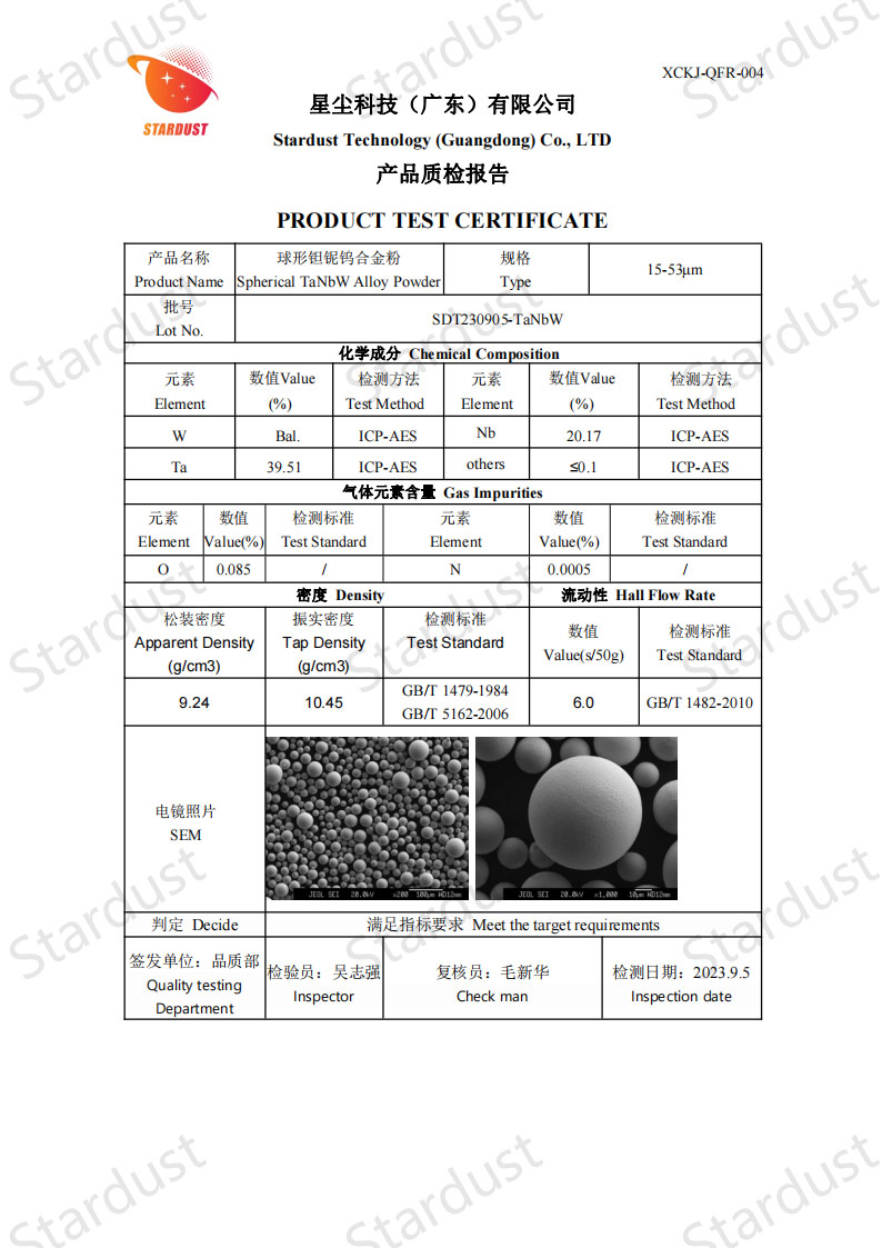 现货3-7天;定制交期双方协商。Ta-Nb-W合金粉末是一种含有钽(Ta)、铌(Nb)和钨(W)三种金属元素的合金粉末,通常用于要求高耐温、高耐腐蚀、高强度的应用场景。