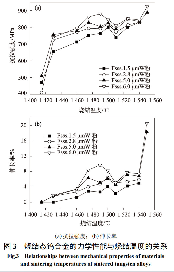 2.2 Effect of tungsten powder particle size and sintering temperature on mechanical properties