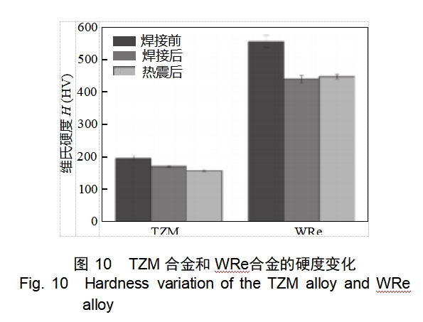(3) TZM/WRe joints after 100 times of thermal shock test, the weld is intact without cracks, and part of the recrystallized Mo grain growth across the border; TZM/WRe joints of the flexural strength and shear strength were as high as