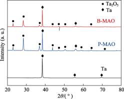 图 2 B-MAO 、P-MAO 涂层和纯 Ta 的 XRD 谱图