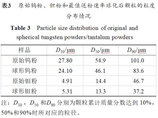 2.1 送粉速率对钨粉和钽粉形貌的影响