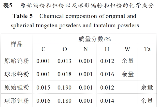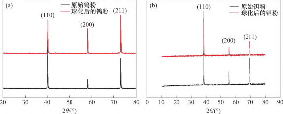 2.4 球化工艺对钨粉和钽粉相组成的影响