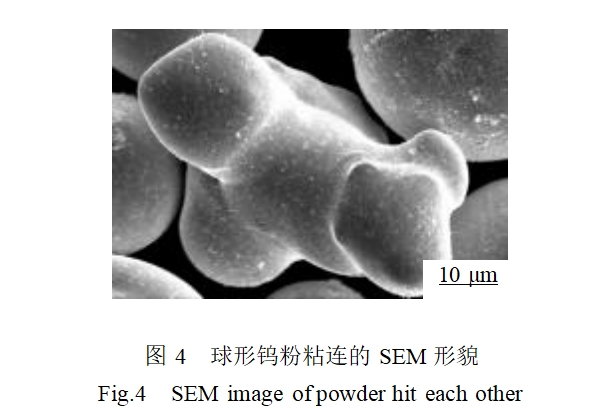 3)随着钨粉的球化率提高,粉末的松装密度和流动性得到改善。钨粉的松装密度由6.80g/cm3提高到11.5g/cm3,粉末流动性由14.12s/50g提高为6.95s/50g。