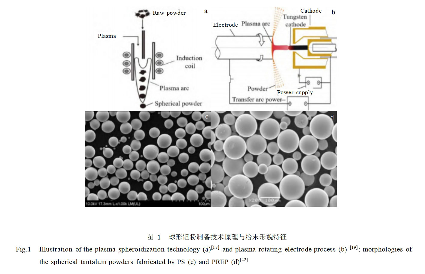 加拿大TENKA公司[20,21]作为全球等离子球化技术的商业化先行者(图1a),在2015年实现了增材制造的球形钽粉的商业化销售,美国环球卓越金属有限公司(GlobalAdvancedMetals)以及中国的北京科技大学、西北有色金属研究院、星尘科技等也先后采用等离子球化技术制备出了球形钽粉,如图1c所示(引自星尘科技官方网站)。但PS技术的设备投资大、运行成本高,且该技术是以粉末为原料制造粉末,由于成本等因素,限制了该类粉末的规模生产和应用。
