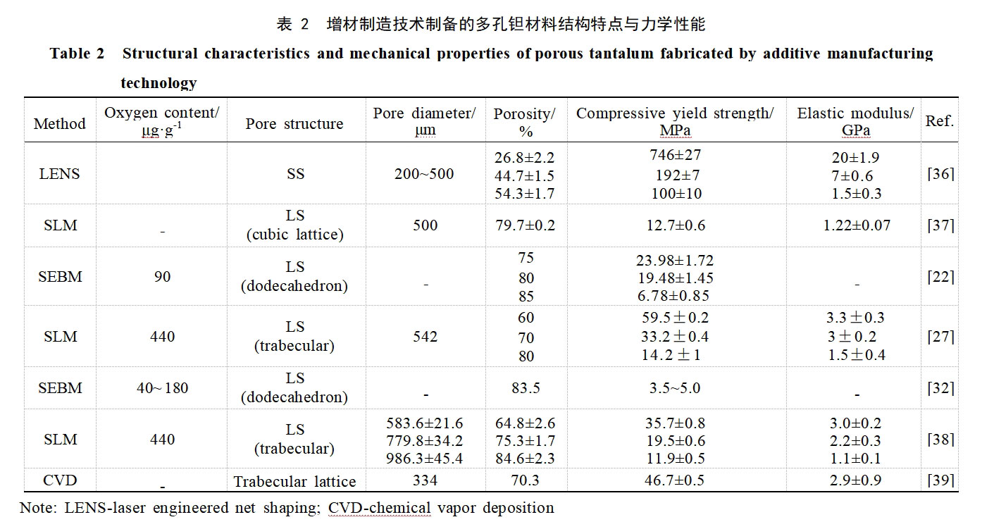 需要引起注意的是,国际标准钽金属植入体标准ISO13782-1996以及中国医疗行业标准YYT0966-2014中,规定钽植入体的氧含量上限是300μg·g-1,然而,现有部分报道所用的粉末原料的氧含量超过了300μg·g-1。