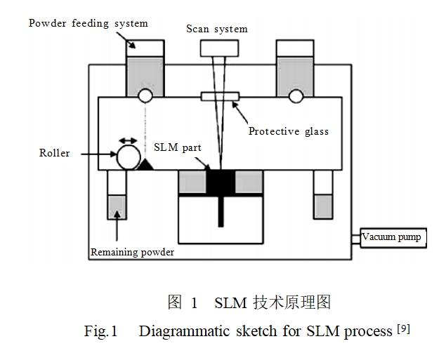 SLM技术(技术原理如图1所示)采用分层制造的思想,以激光束作为热源,成形时先在基板上铺平一定厚度的粉末,然后激光按规划轨迹辐射粉末,使辐射范围内粉末经历熔化和凝固的过程,单层扫描完成后,再在该层之上铺平一层粉末,重复上述熔化、凝固、铺粉步骤直至成型完成。SLM技术采用微熔池逐层堆积方法,具有近净成形、无需模具等特点,十分适用于小尺寸、复杂形状、力学性能优异的零件成形。目前报道的增材制造W-Ni-Fe合金多用SLM技术制备。