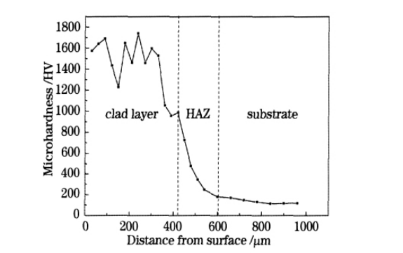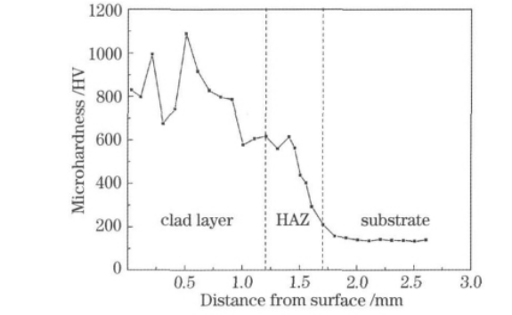 图 9 熔覆层沿层深方向的显微硬度曲线
