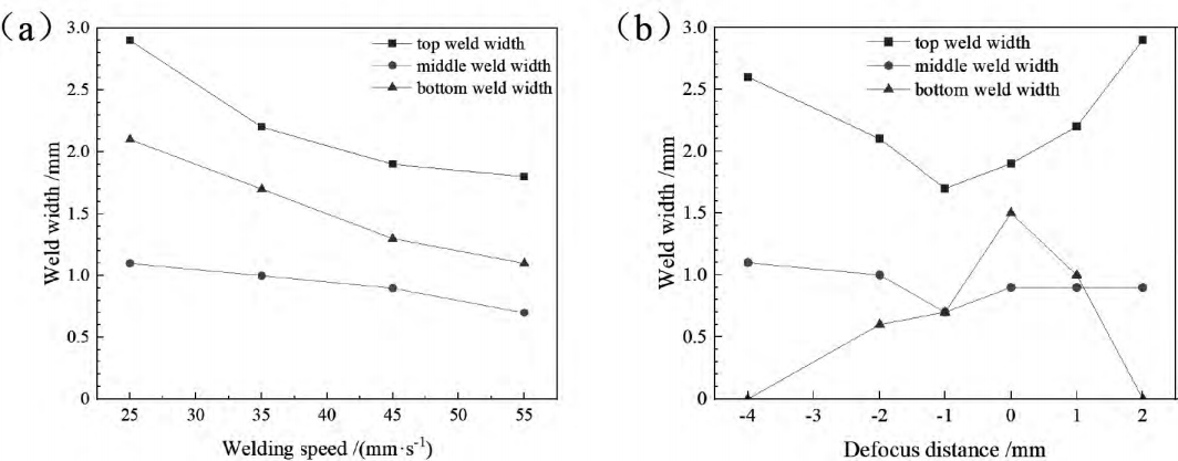 图 4 工艺参数对焊缝熔宽的影响 (a) 焊接速度;(b) 离焦量