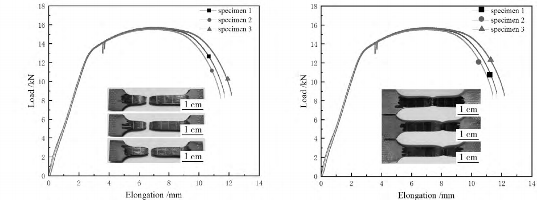 图 7 拉伸试样载荷位移曲线 (a) 母材试样;(b) 焊接试样