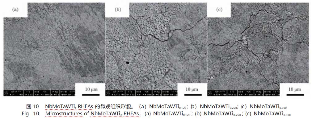 3.2 NbMoTaWTix RHEAs的组织与性能分析