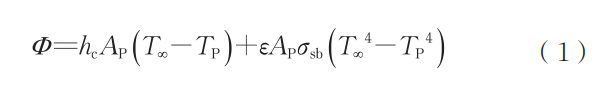等离子球化过程中,等离子体炬区域温度很高,体炬和其外延的高温区平均温度在3000℃以上,在该区域中金属颗粒融化成液滴,尽管金属液滴在该区域停留时间短,但在如此高温下金属液滴的气化损耗不可避免。高温区长度根据Tekna公司生产制造的型号为TekSphero-80kW的感应等离子球化设备来确定,高温区长度为0.25m,计算过程中选取温度为高温区的平均温度。元素的气化损耗主要发生在颗粒熔化转变为液态的阶段,主要包括颗粒熔化后和凝固前这段时间。金属颗粒在飞行过程中主要通过对流换热和环境辐射获得热量,单位时间内交换的热量Φ(单位W)可表示为[22-23]: