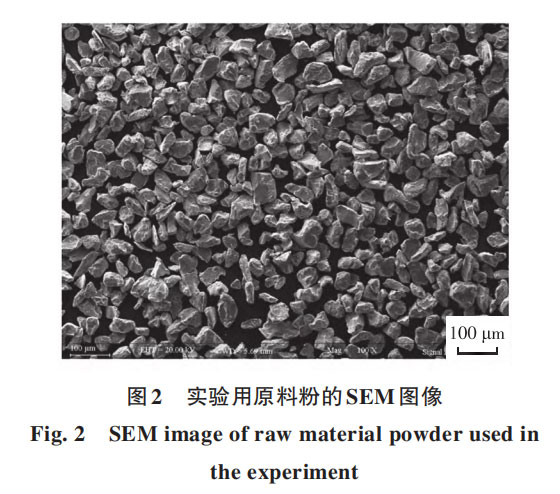 通过实验研究了不同工艺对球化过程合金元素损耗率和气相脱除率的影响。实验在高频感应等离子球化设备上进行,由Tekna公司生产制造,型号为TekSphero-80kW。感应等离子体发生器无电极,不会污染粉末,特别适用于制备高纯度粉末或材料,另外,对原料的熔化温度几乎没有限制。实验用粉末选择Nb521合金粉(成分为W:4.5%~5.5%、Mo:1.5%~2.5%、Zr:0.7%~1.5%,其余为Nb),通常增材制造用Nb合金球形粉粒度为15~53μm,本文选用的粉末粒度为30~50μm,SEM图像如图2所示。合金元素在高温区气化后会在低温区凝结成粒度更小的粉末,通常这些重新凝结的粉末粒度非常细,粒径小于5μm,部分附着在球化室内壁上,部分随气流运动并在过滤装置处与气体分离,也有部分附着在球化后颗粒的表面。粉末球化后通过超声清洗和筛分,去除颗粒表面附着的细粉,然后称量获得球化后粉末的质量m1,在球化之前也通过称量获得球化前粉末质量m0,合金的损耗率为1-m1/m0。气相元素脱除率计算方法为,在加工前后分别检测O、N等元素的含量,根据球化前后这些元素的含量变化计算脱除率。