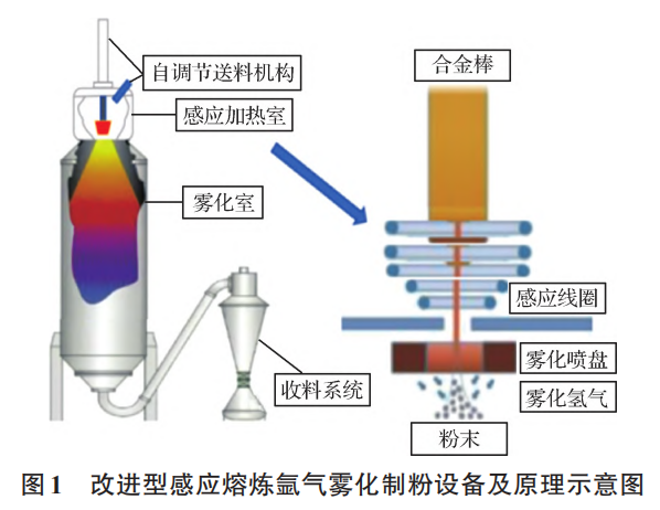 当前,国内外尚未有利用EIGA法成功制备球形铬粉的公开报告,可能是由于铬金属极高的熔点所致,使传统EIGA设备在熔化铬棒时面临巨大挑战。为解决这一难题,实验研发了优化后的电极感应气雾化制粉设备,对送料机构与加热系统进行了全面升级。