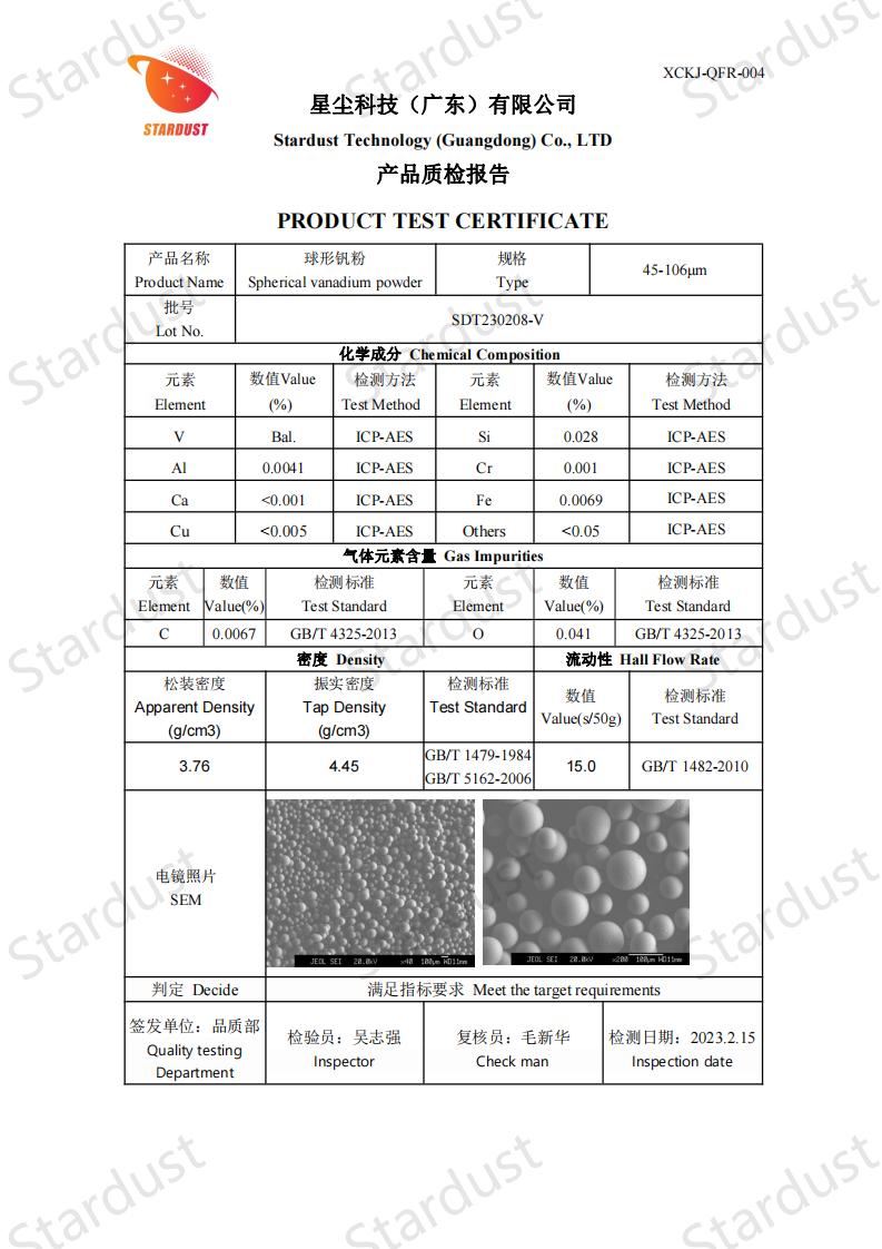 纯度:制备过程能有效去除杂质,钒粉纯度较高,杂质如氧、氮、碳等含量较低,保证了产品性能的稳定性和一致性。